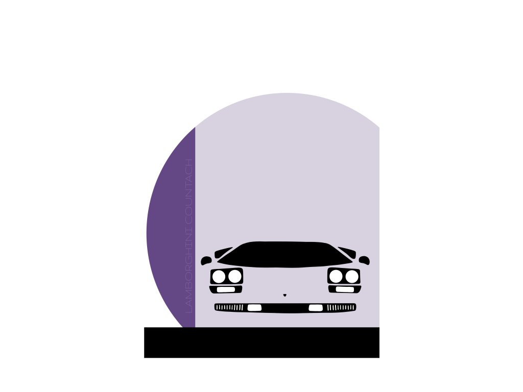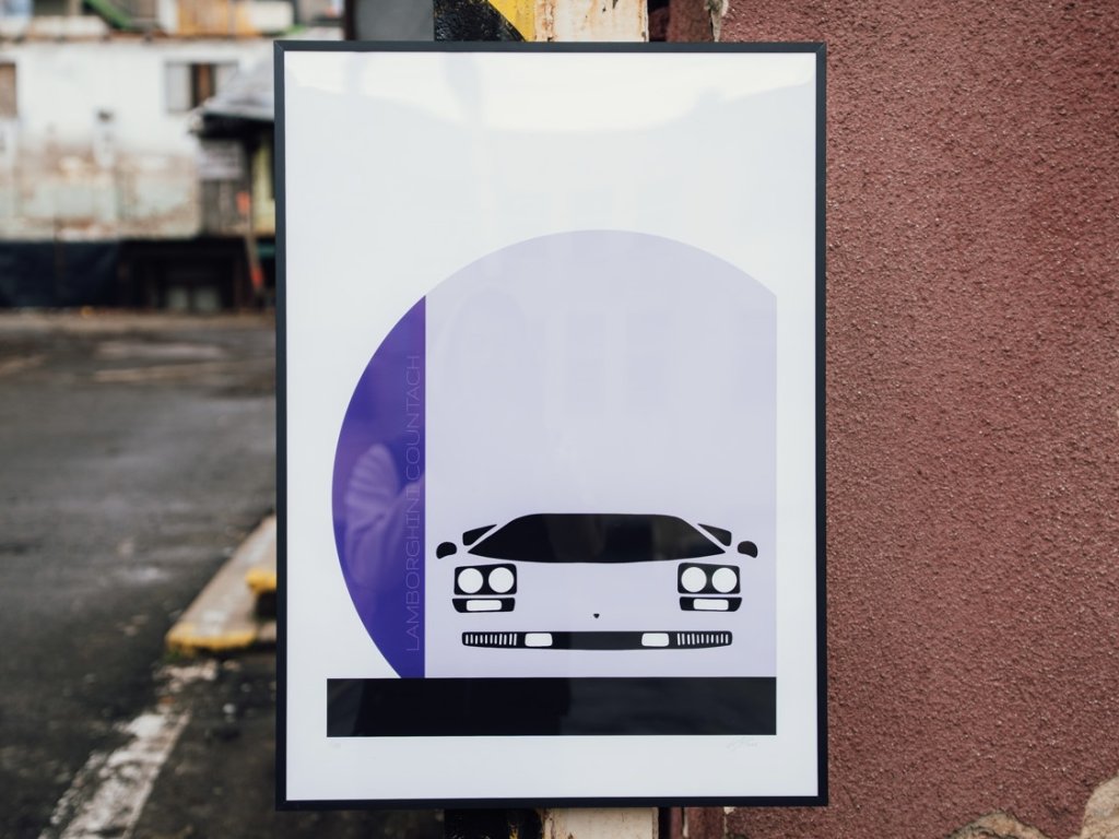 “Lamborghini Countach – Violet Horizon” zjednodušuje ikonický tvar supersportu do čistých linií a umísťuje jej před abstraktní horizont tvořený půlkruhem. Fialové a šedé tóny tvoří kontrast mezi dravostí vozu a klidem geometrie. Dílo zachycuje kultovní design Countache jako symbol éry, kdy hranice mezi technikou a uměním mizely.