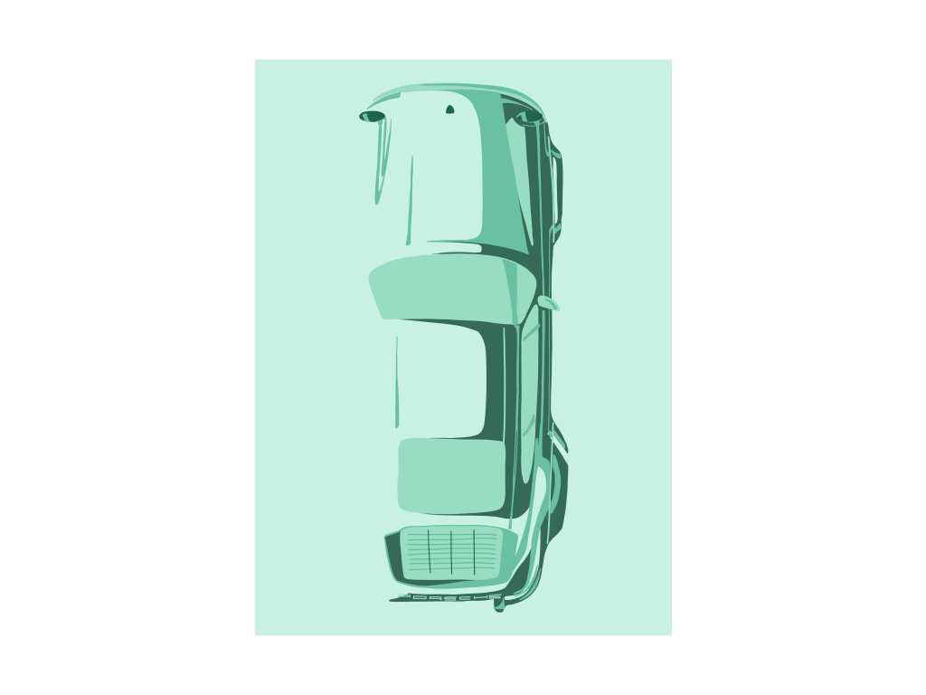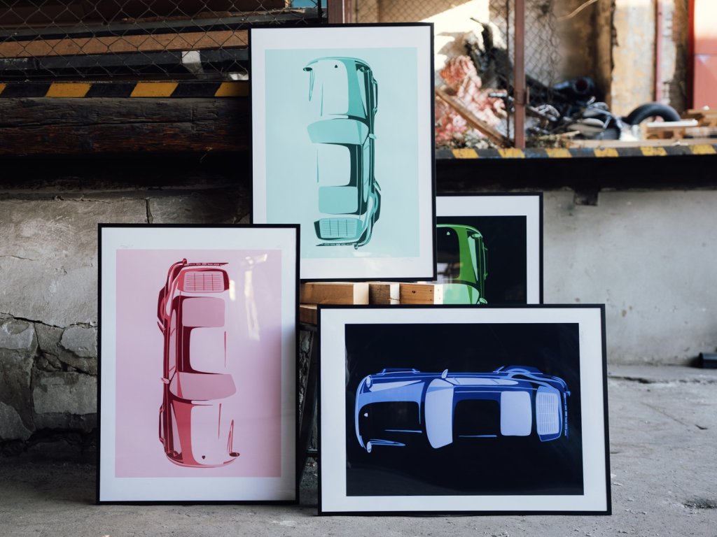 Série minimalistických printů interpretující ikonický tvar Porsche 911. Stylizovaný pohled shora kombinuje precizní linii s monochromní hravou barevností, která zdůrazňuje eleganci křivek.